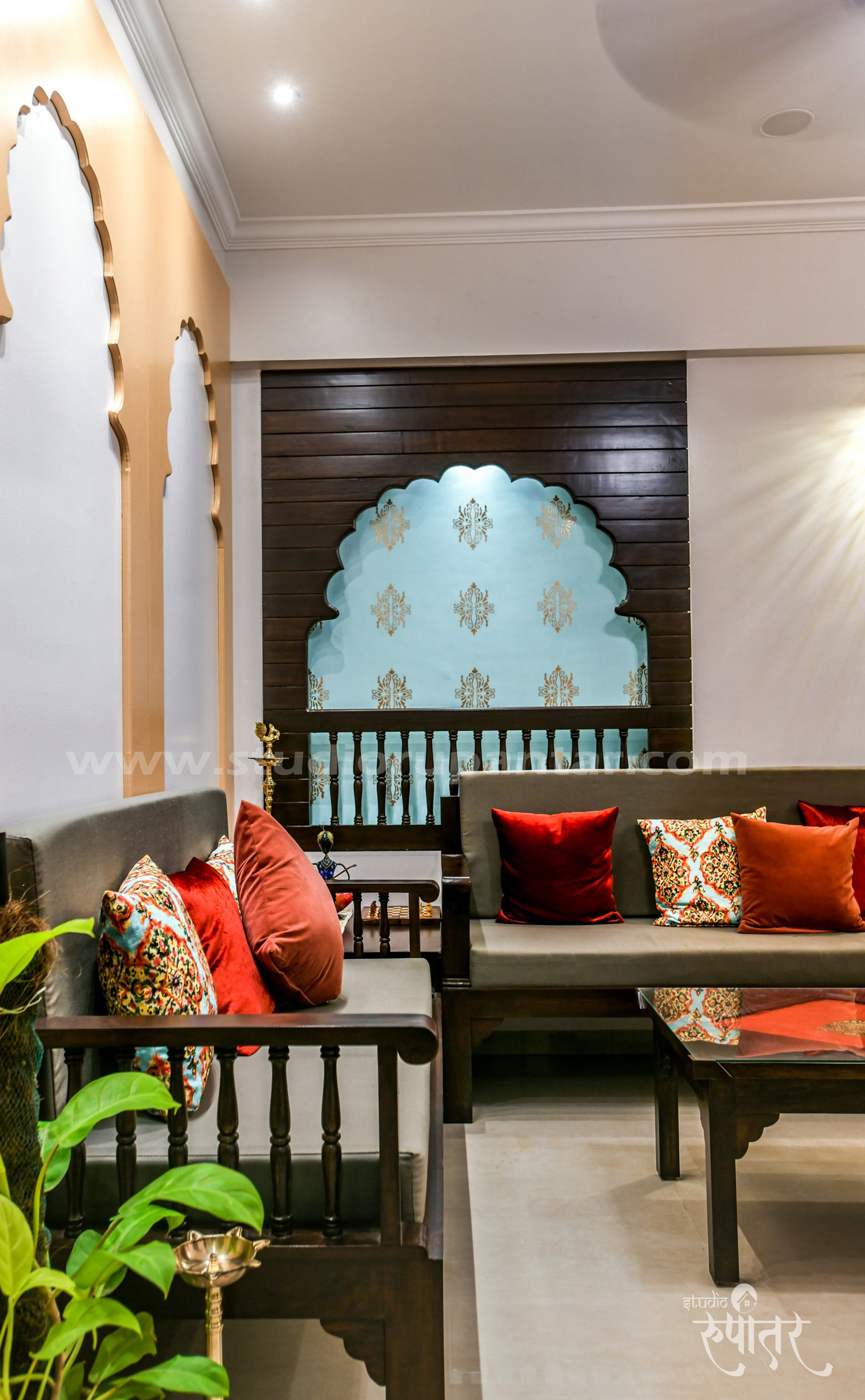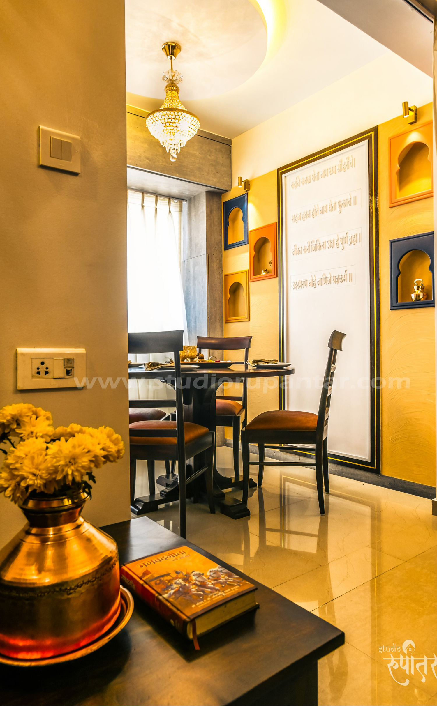 This Project Gratified The Client’s Desire To Incorporate Maharastrian Elements In Complete New Way, Recognizing Studio Rupantar For The Maharastrian Theme Interiors.