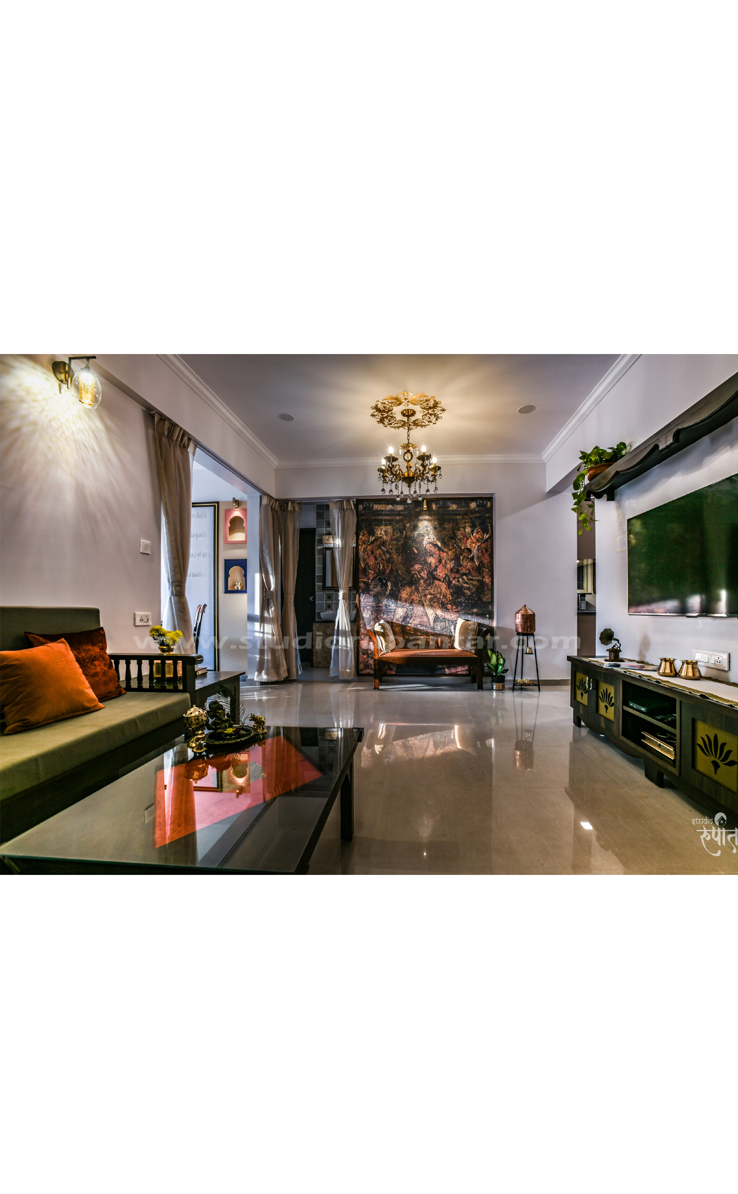 A 108 , Aura Ville Is A Contemporary Maharastrian Home Designed For A Nuclear Family Of 3 And Their Parents Visiting Occasionally. The Couple Desired Their New Home To Be A Refined Reflection Of Rich Maharastrian Theme Elements To Be Incorporated In The Focal Area Of The Apartment.